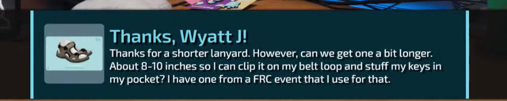 next week's show? Also keep up the great product releases. | Timestamp |  |