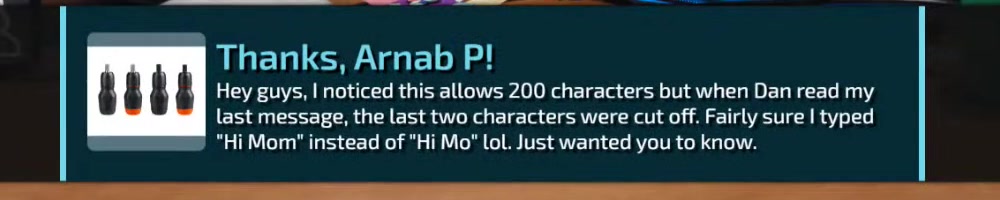 | Caleb T | message | Thanks, Caleb T!