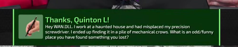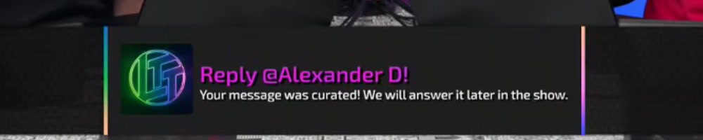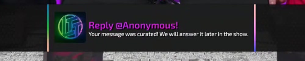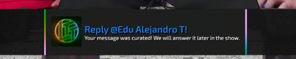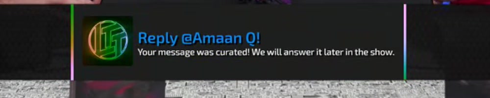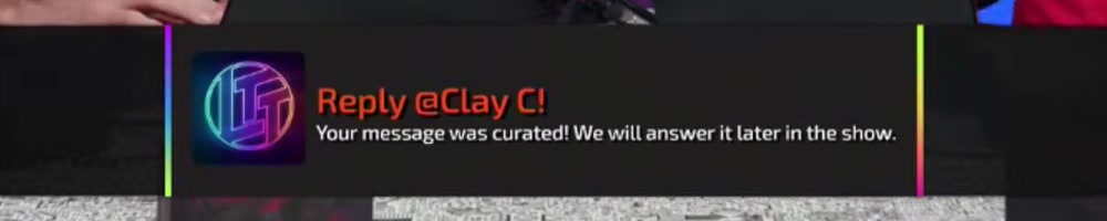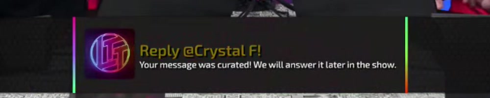 Your message was curated! We will answer it later in the show. | Timestamp |  |