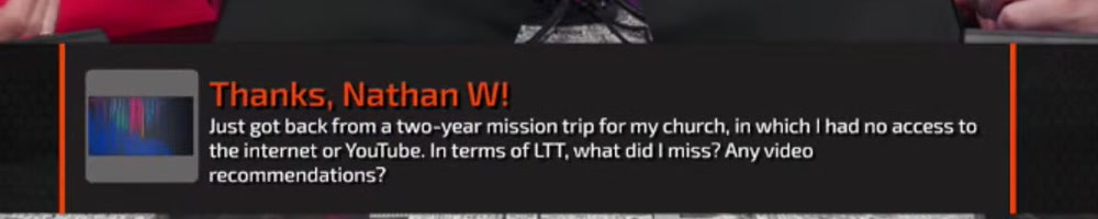 the internet or YouTube. In terms of LTT, what did I miss? Any video