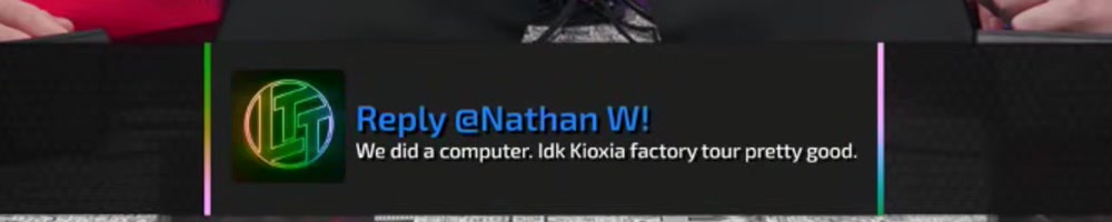 We did a computer. Idk Kioxia factory tour pretty good. | Timestamp |  |