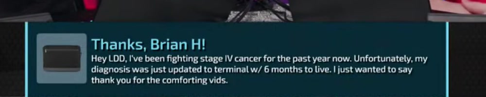 Hey LDD, I've been fighting stage IV cancer for the past year now. Unfortunately, my