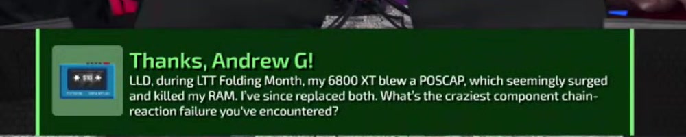 LLD, during LTT Folding Month, my 6800 XT blew a POSCAP, which seemingly surged