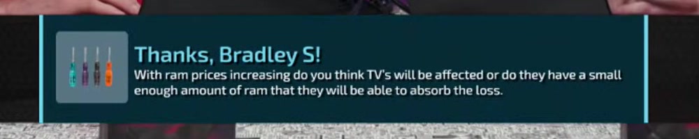 With ram prices increasing do you think TV's will be affected or do they have a small
