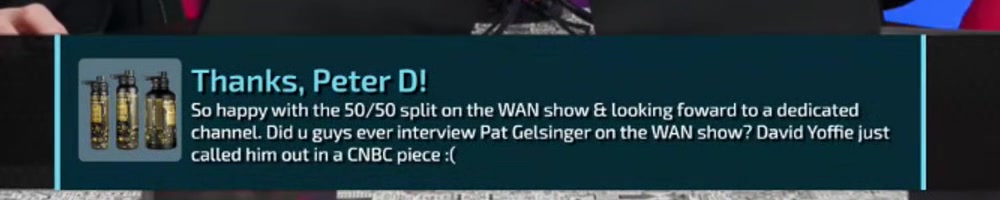 channel. Did u guys ever interview Pat Gelsinger on the WAN show? David Yoffie just