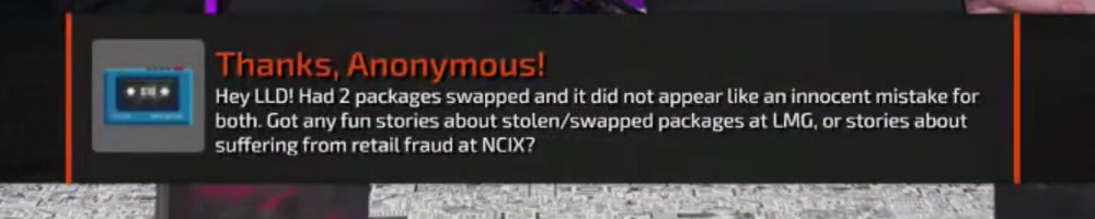 both. Got any fun stories about stolen/swapped packages at LMG, or stories about