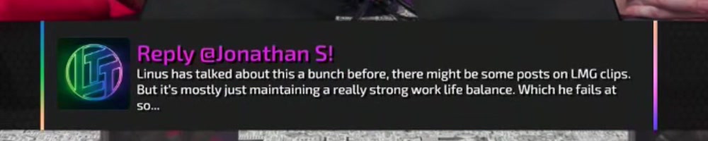Love you guys! Been watching Linus since the early days. | Timestamp |  |