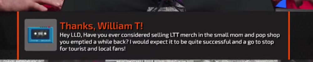 Hey LLD, Have you ever considered selling LTT merch in the small mom and pop shop