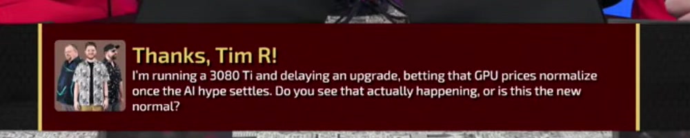 I'm running a 3080 Ti and delaying an upgrade, betting that GPU prices normalize