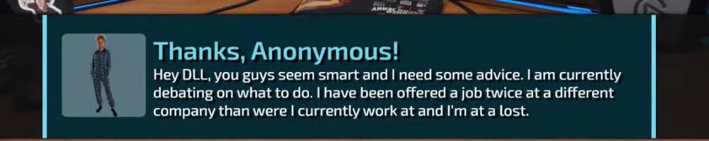 Hello DLL (cuz Dan is clearly most important1) what's one thing you