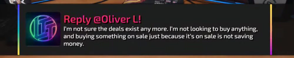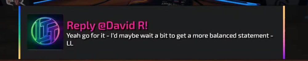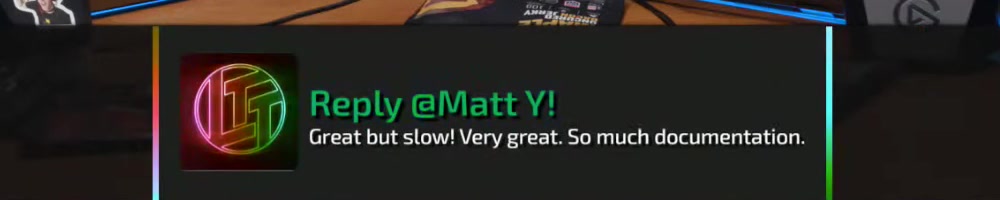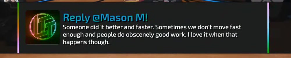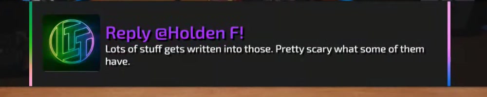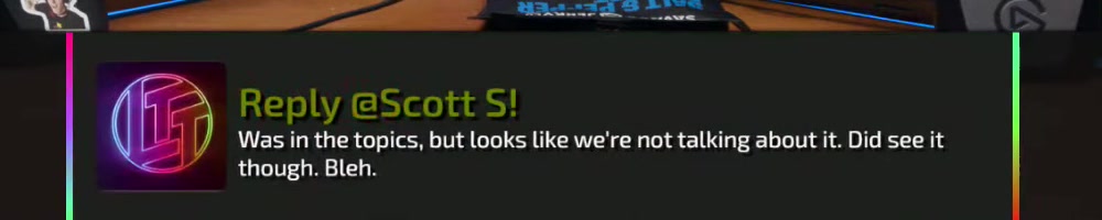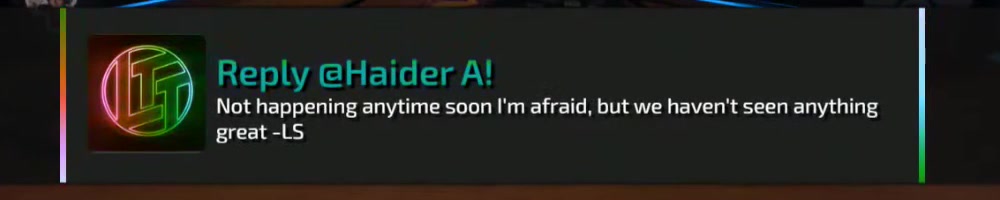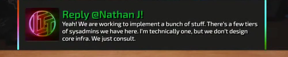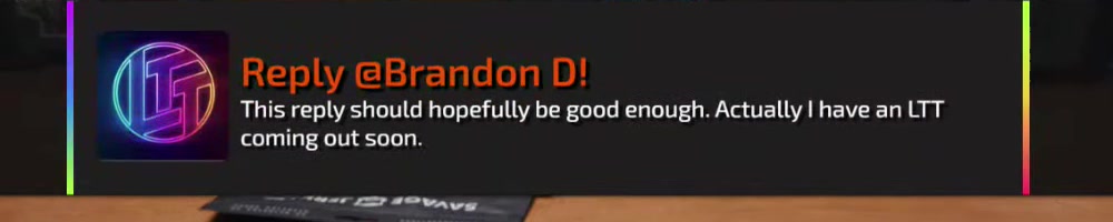 This reply should hopefully be good enough. Actually I have an LTT