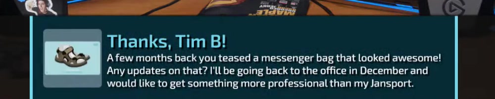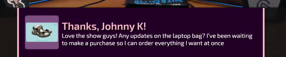 Love the show guys! Any updates on the laptop bag? I've been waiting