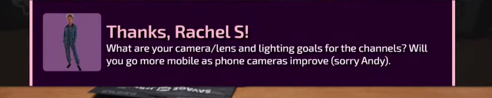 What are your camera/lens and lighting goals for the channels? Will