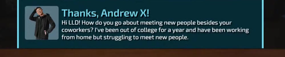 from home but struggling to meet new people. | Timestamp |  |