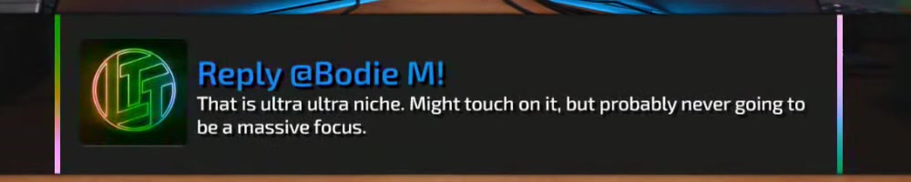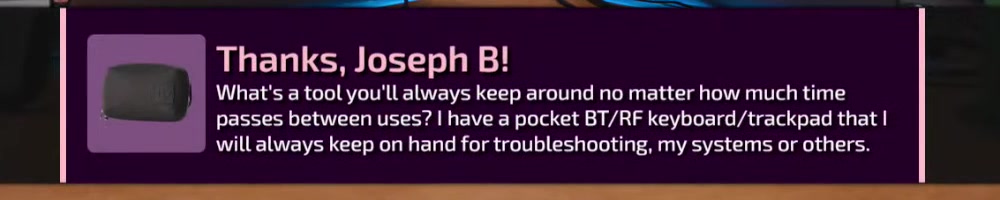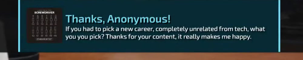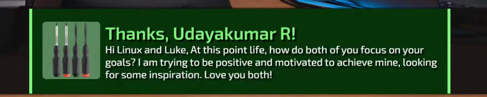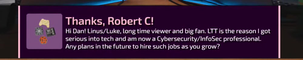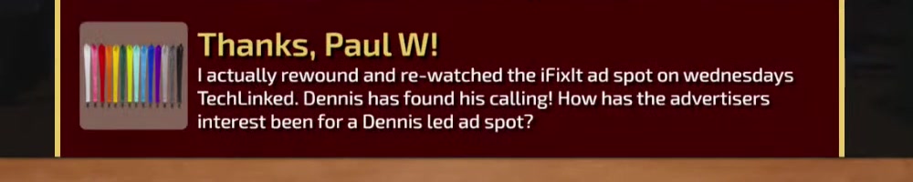 “‘" . ? Hello guys love everything you guys do. Question for Linus any idea if