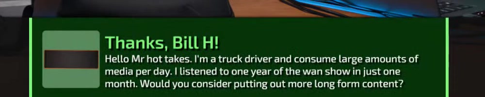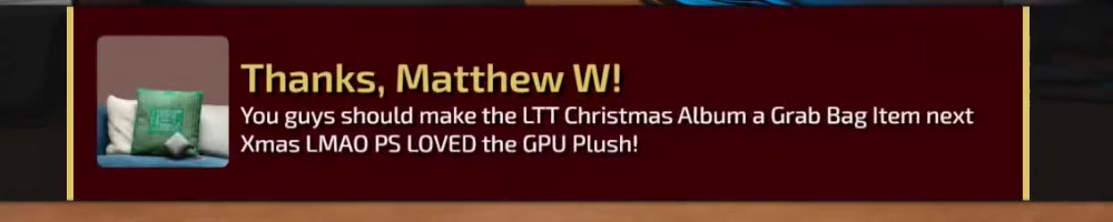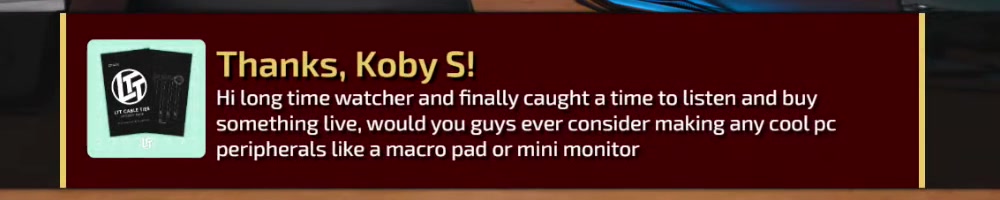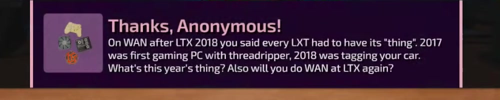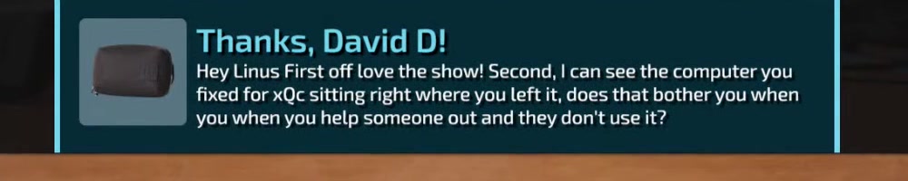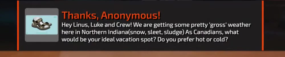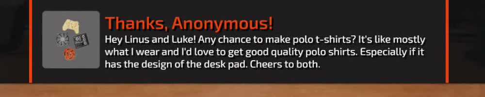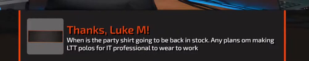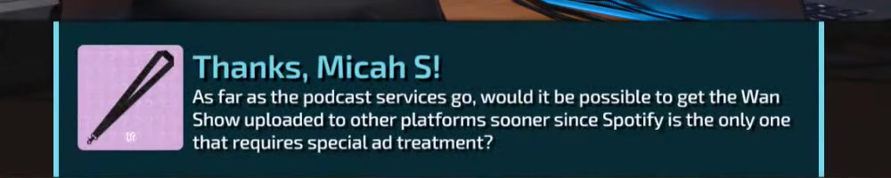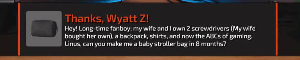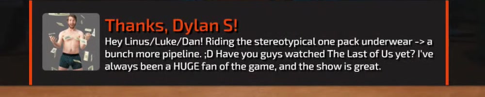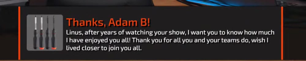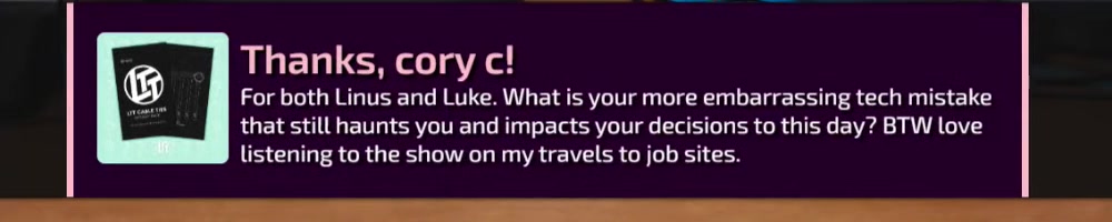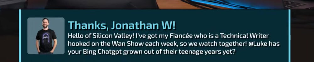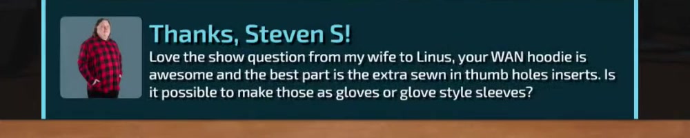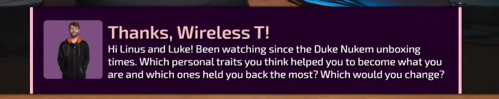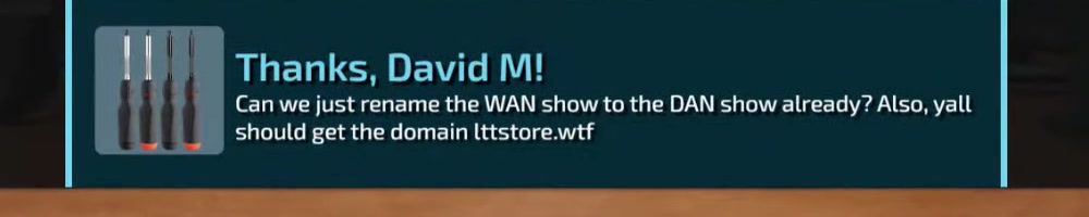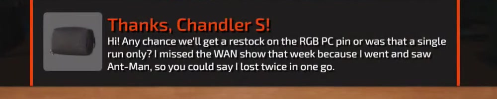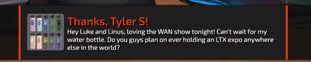 Hey Luke and Linus, loving the WAN show tonight! Can't wait for my