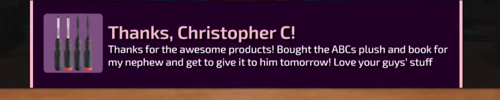 Thanks for the awesome products! Bought the ABCs plush and book for