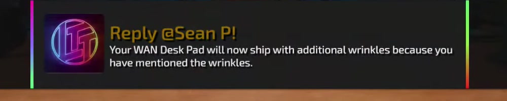 Your WAN Desk Pad will now ship with additional wrinkles because you