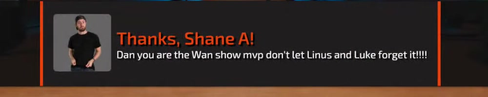 Dan you are the Wan show mvp don't let Linus and Luke forget it!!!!