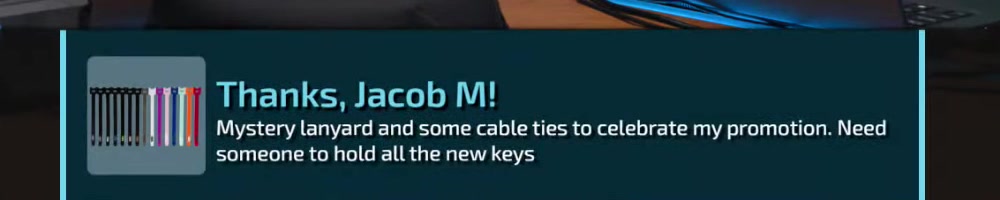 Mystery lanyard and some cable ties to celebrate my promotion. Need