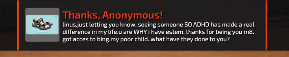 E linus,just letting you know. seeing someone SO ADHD has made a real