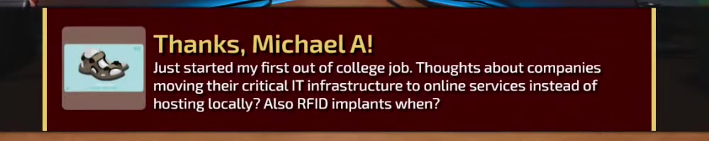 | Jeffrey R | message | Thanks, Jeffrey R!