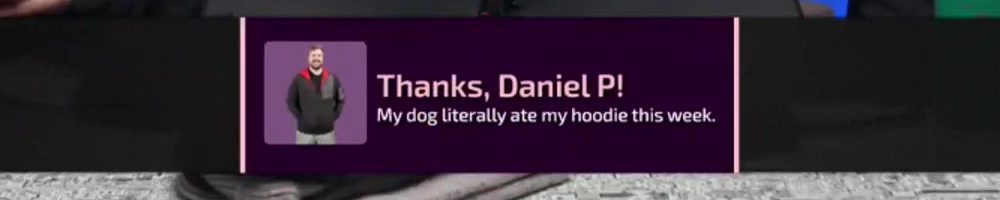 | Daniel P | message | Thanks, Daniel P! My dog literally ate my hoodie this week. | Timestamp | ![]() |