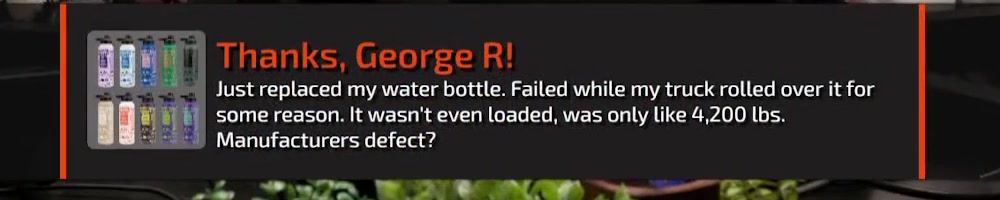 Just replaced my water bottle. Failed while my truck rolled over it for