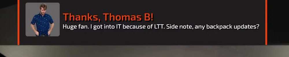 Huge fan. I got into IT because of LTT. Side note, any backpack updates?
