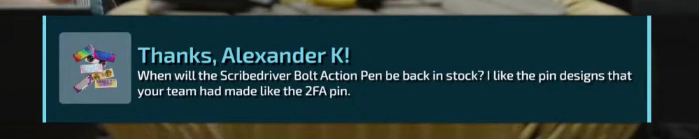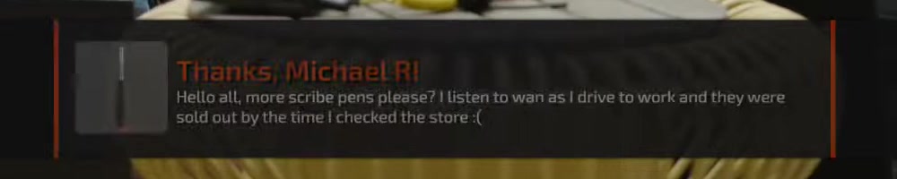 Hello all, more scribe pens please? I listen to wan as I drive to work and they were