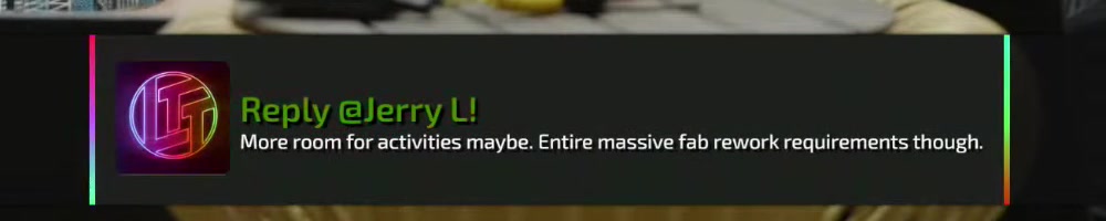 More room for activities maybe. Entire massive fab rework requirements though. | Timestamp |  |