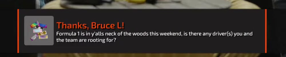 Formula 1 is in y'alls neck of the woods this weekend, is there any driver(s) you and