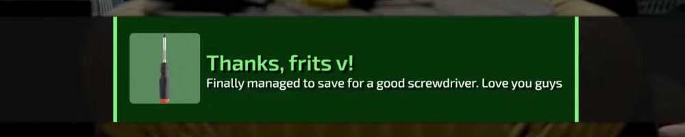 Finally managed to save for a good screwdriver. Love you guys | Timestamp |  |