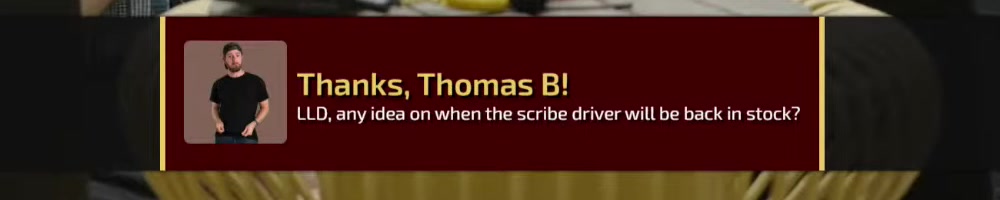 LLD, any idea on when the scribe driver will be back in stock? | Timestamp |  |