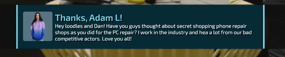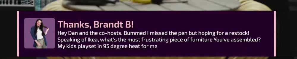 Hi Dan and LL. I came for the Merch, I came back for the quality products. Have you