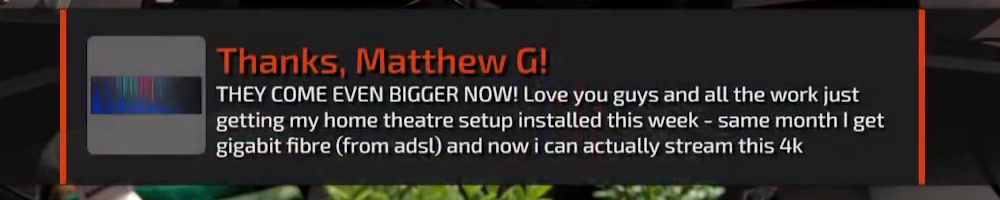 gigabit fibre (from adsl) and now i can actually stream this 4k