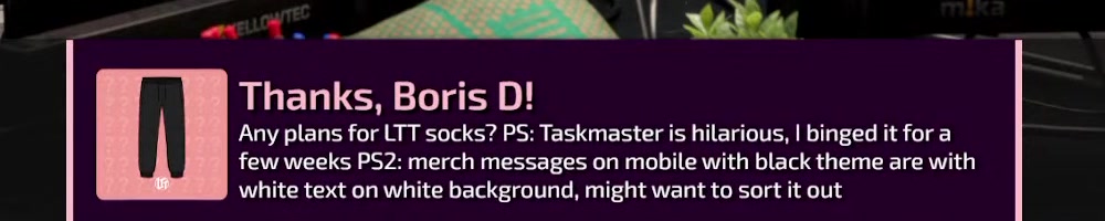 Any plans for LTT socks? PS: Taskmaster is hilarious, I binged it for a